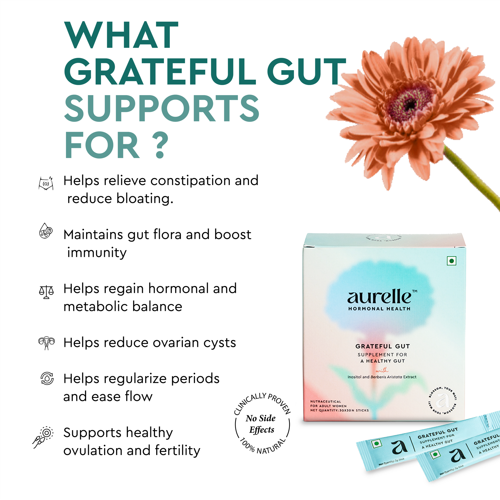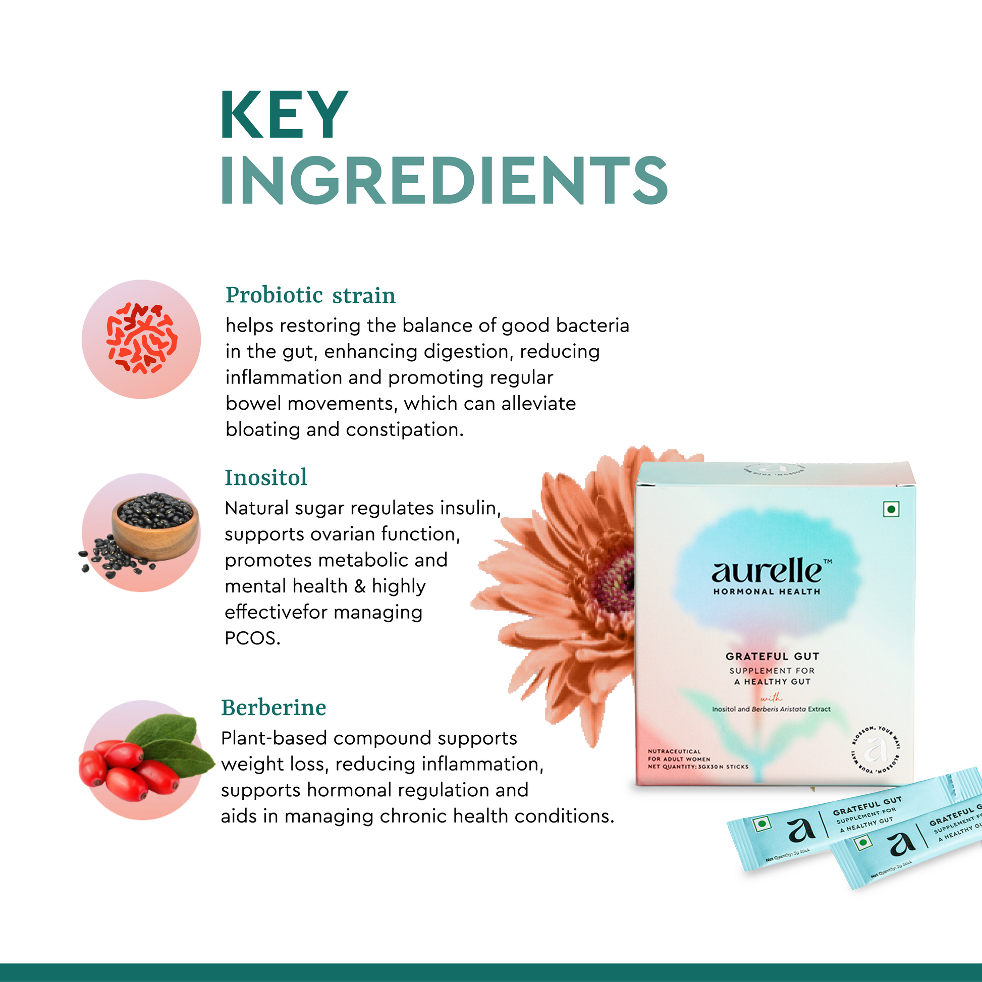 Good health, straight from the gut! Grateful Gut is your answer to PCOS-caused gut health issues. Engineered with a remarkable blend of Berberine and Inositol, this supplement restores your healthy gut microbiota and improves your metabolic health.