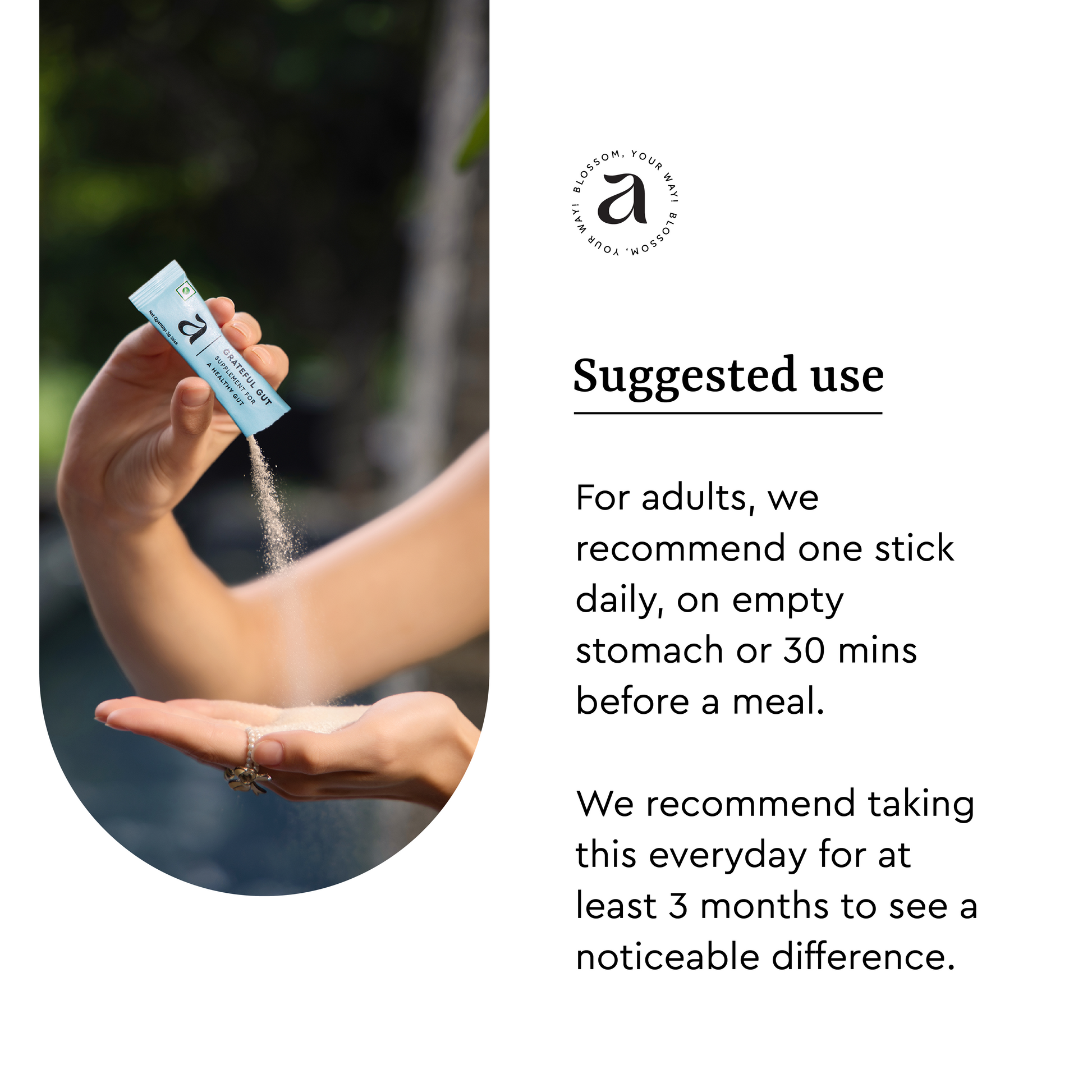 For adults, we recommend one stick daily, on empty stomach or 30 mins before a meal.